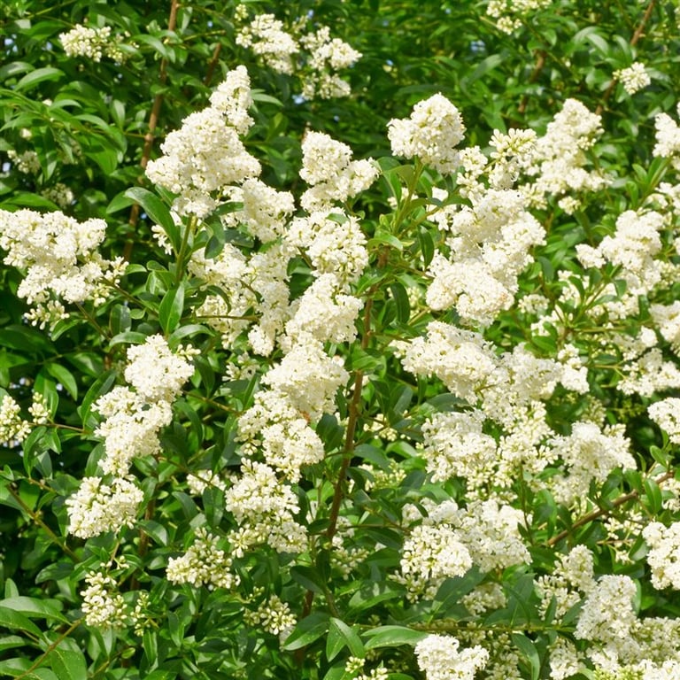 Groenblijvend, kleine witte bloemen. Vorstbestendig.