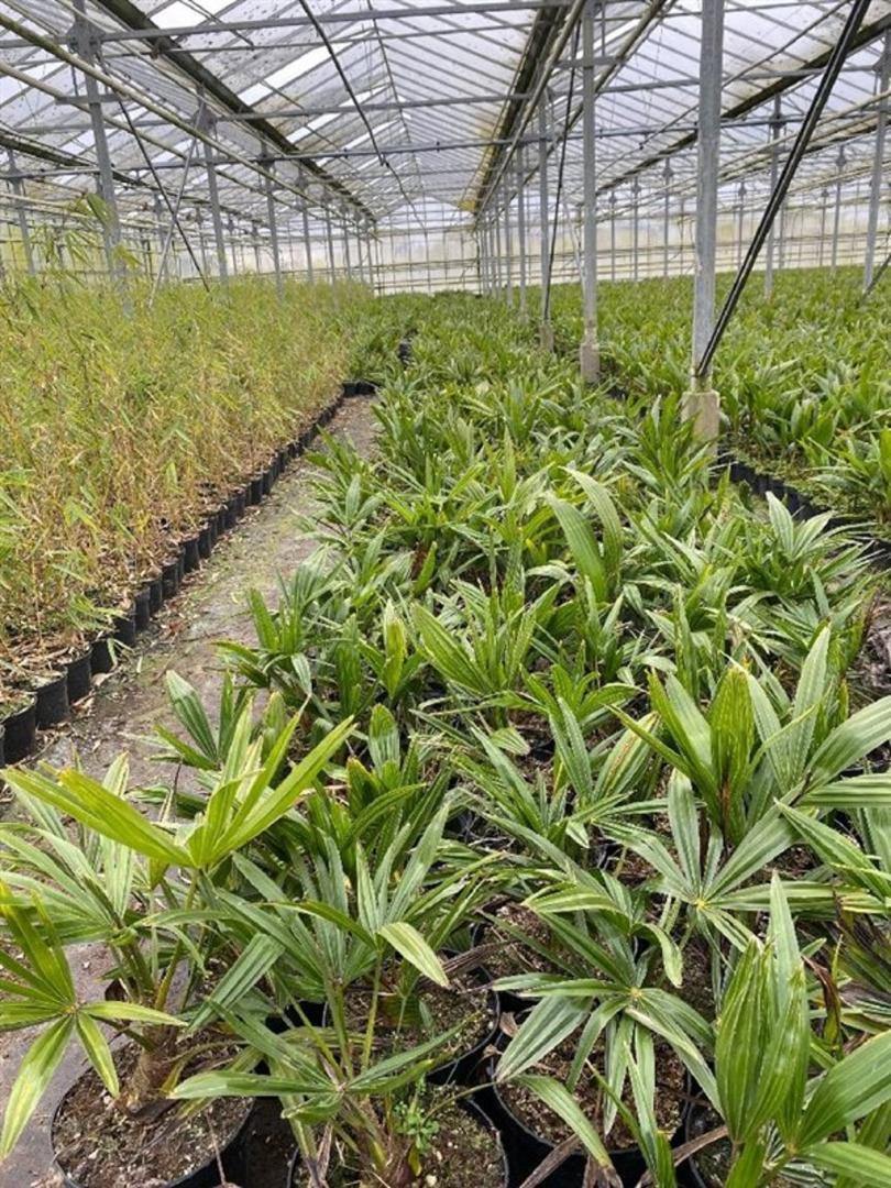 Winterharde palm (tot -15/-18°C), stam bedekt met vezels, grote waaiervormige bladeren. Geschikt voor buiten in beschutte plek, verdragen lichte vorst.